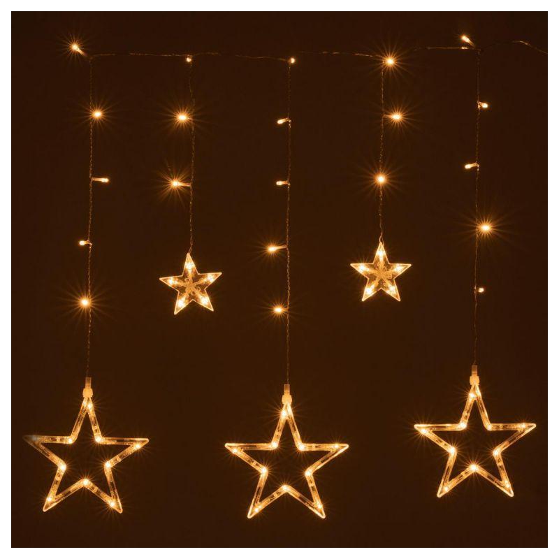 Kratší dekorativní vánoční řetěz s hvězdičkami na baterie s možností dálkového ovládání (dálkový ovladač je součástí balení). Světelná délka řetězu je 0,6 m a hvězdy svítí teple bílou barvou.