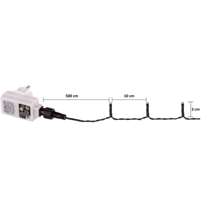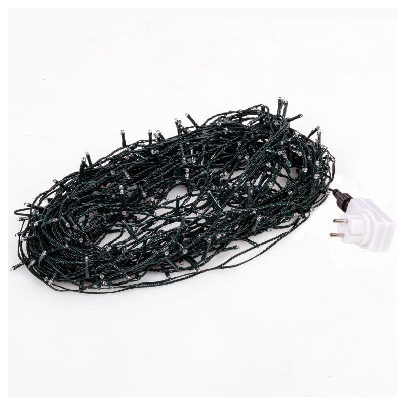 Barevný vánoční světelný řetěz na dálkové ovládání s napájením z klasické elektrické zásuvky 230 V. Voděodolné provedení s krytím IP 44, díky čemuž je vhodný pro vnitřní i venkovní použití. Celkem 600 LED diod; délka 60 m + 5 m napájecí kabel.
