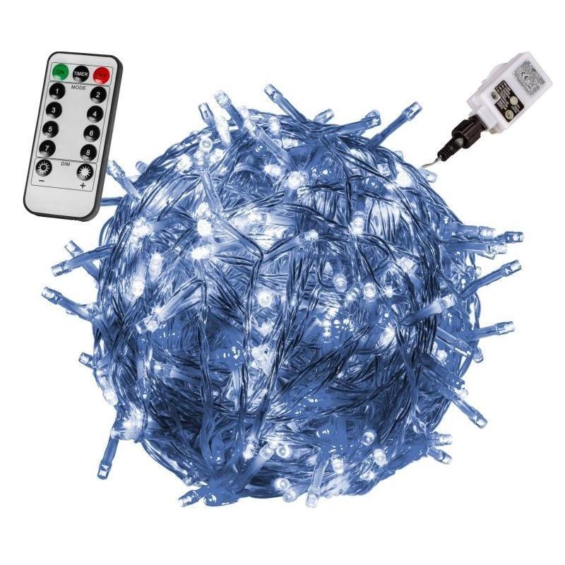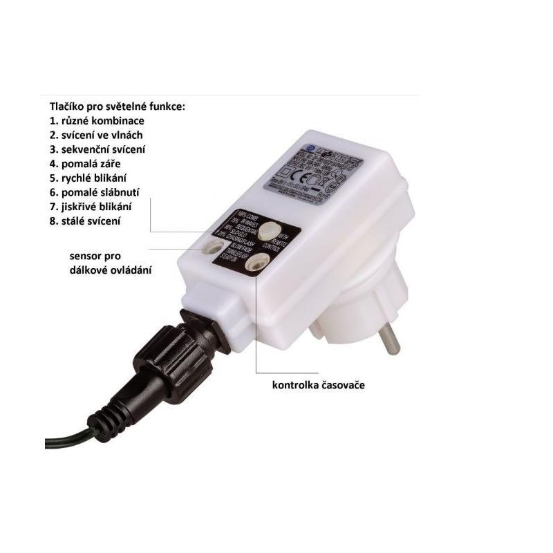 Ovládání prostřednictvím dálkového ovladače, díky čemuž můžete řetěz zapínat, vypínat, měnit jeho jas, nebo nastavovat různé funkce z pohodlí domova, i když máte řetěz samotný umístěný venku (funkce svícení a blikání je možno měnit i přímo na adaptéru do elektrické zásuvky).