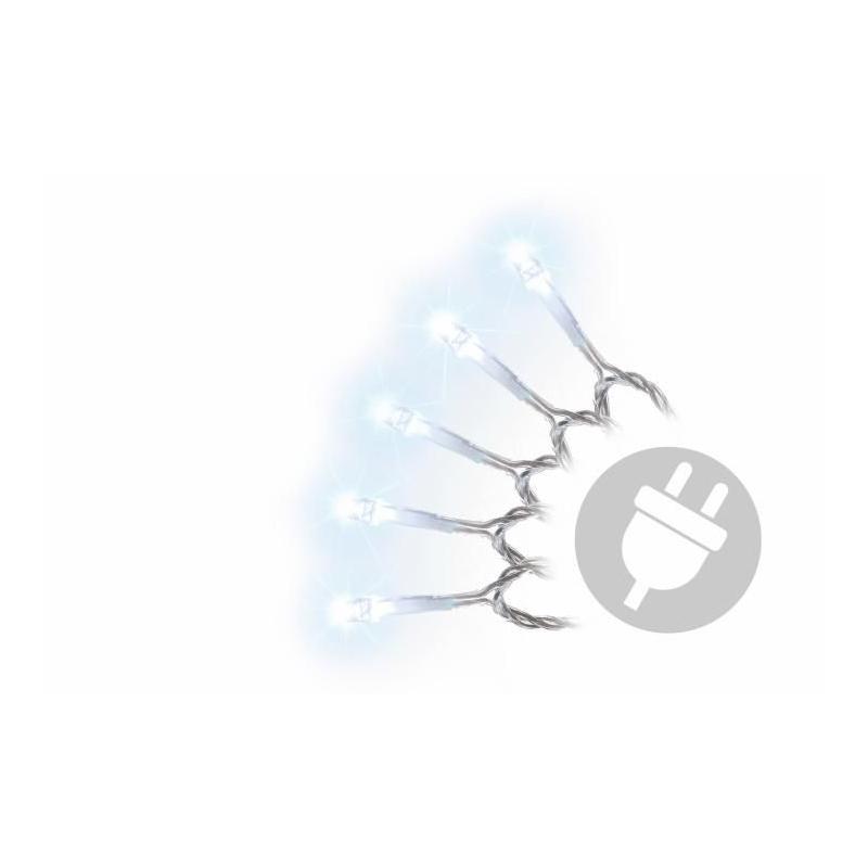 Vánoční LED řetěz s délkou světelné části 9 m a celkovým počtem 100 LED diod. Řětěz vydává studeně bílé světlo, barva kabelu je tranparentní (průhledná).