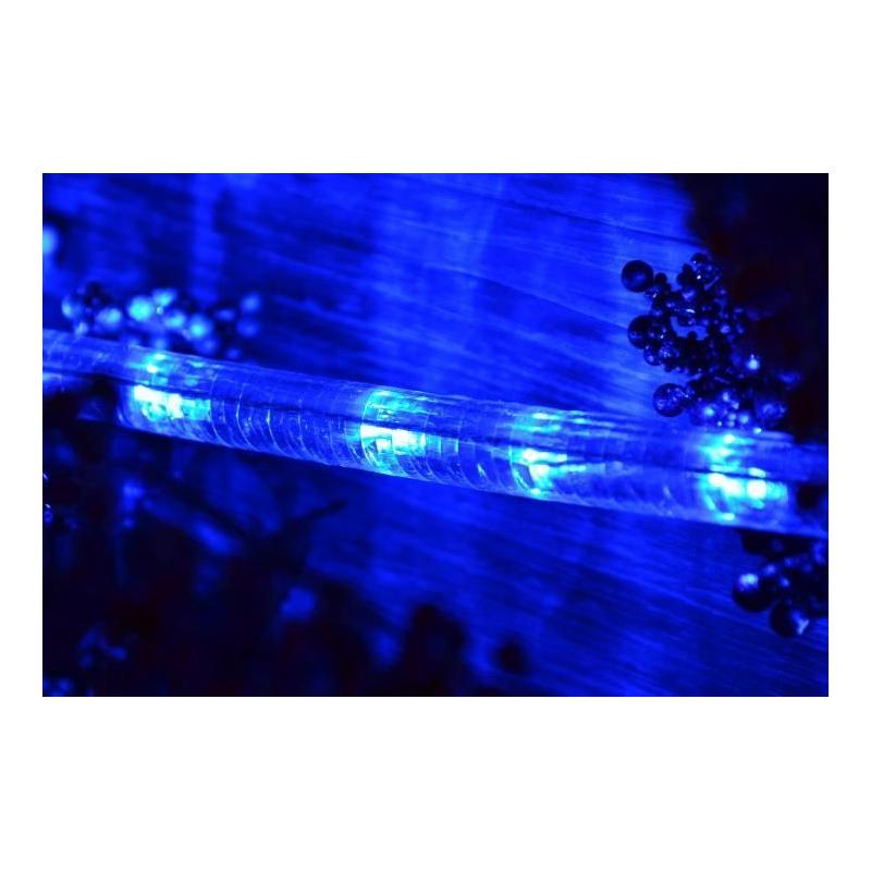 Světelný kabel do elektrické zásuvky 230 V, který je voděodolný, takže je vhodný pro vnitřní i venkovní použití. Délka světelné části 20m. Napájecí kabel 1,55 m. V kabelu jsou umístěny úsporné LED diody svítící sytě modrou barvou.