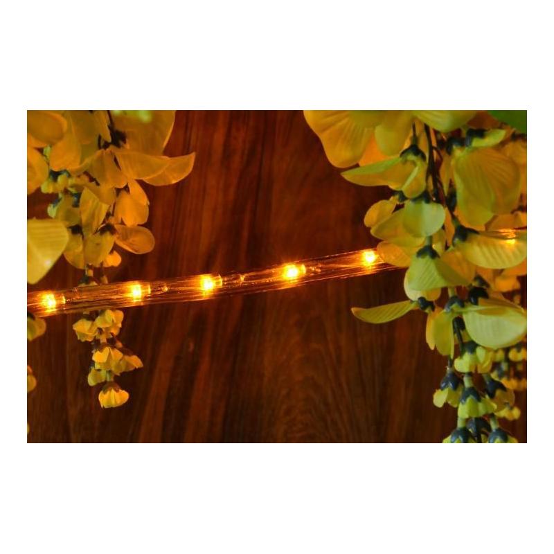Světelný kabel do elektrické zásuvky 230 V se žlutými LED diodami, který je voděodolný – vhodný pro vnitřní i venkovní použití. Délka světelné části 10m.