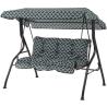 Rodinná zahradní houpačka- houpací lavice pro 3 osoby s pevnou kovovou konstrukcí doplněná o látkovou stříšku proti slunci a měkké pohodlné polstrování. Rám v barvě antracit + polstrování a stříška v tmavě zelené barvě s vlnkami.