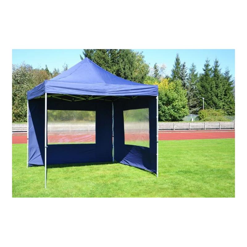 Nůžkový zahradní altán / stan v oblíbeném rozměru 3x3 m modré barvy. Profi provedení s eloxovanou hliníkovou konstrukcí a střechou + bočními stěnami z polyesteru s vodotěsnou úpravou. Součástí balení jsou 4 boční stěny (2 stěny s okny, 2 stěny bez oken) pro ochranu před větrem, které se upevňují ke konstrukci pomocí jednoduchých závěsů a suchého zipu.