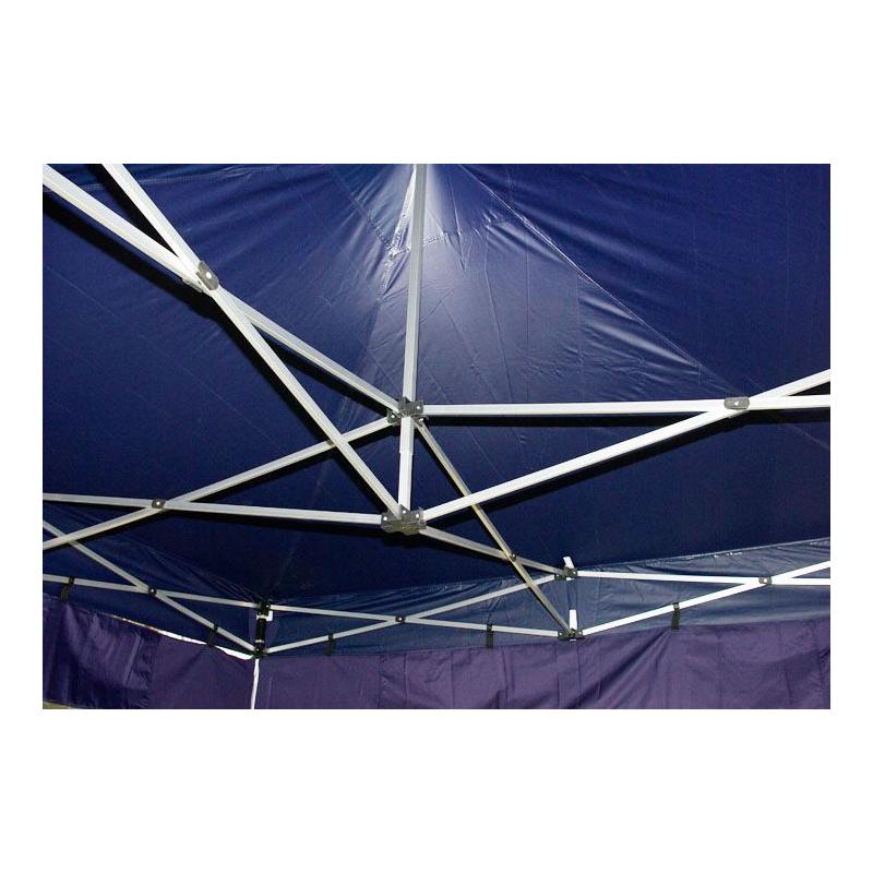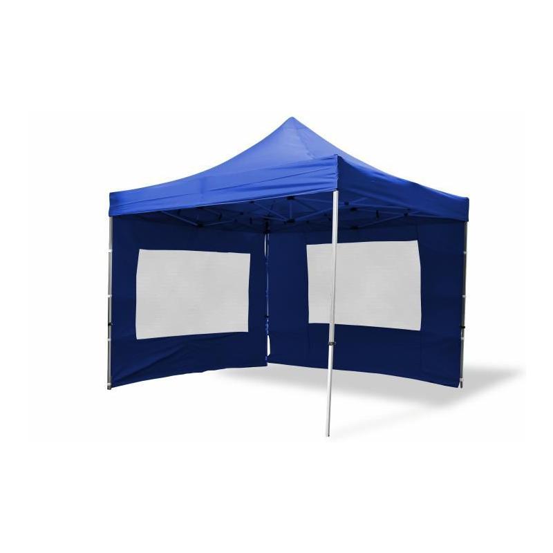 Nůžkový zahradní altán / stan v oblíbeném rozměru 3x3 m modré barvy. Profi provedení s eloxovanou hliníkovou konstrukcí a střechou + bočními stěnami z polyesteru s vodotěsnou úpravou. Součástí balení jsou 2 boční stěny s okny pro ochranu před větrem, které se upevňují ke konstrukci pomocí jednoduchých závěsů a suchého zipu.