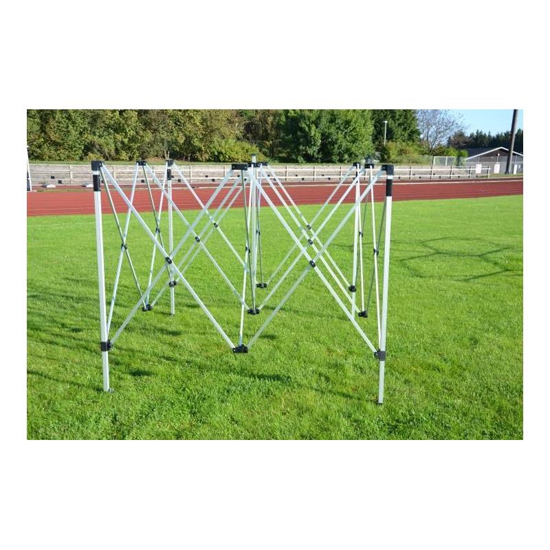 Díky nůžkové konstrukci je stan možno rozložit a opětovně složit během několika minut. U stanu 3x3 zvládne tento krok i jedna osoba.
