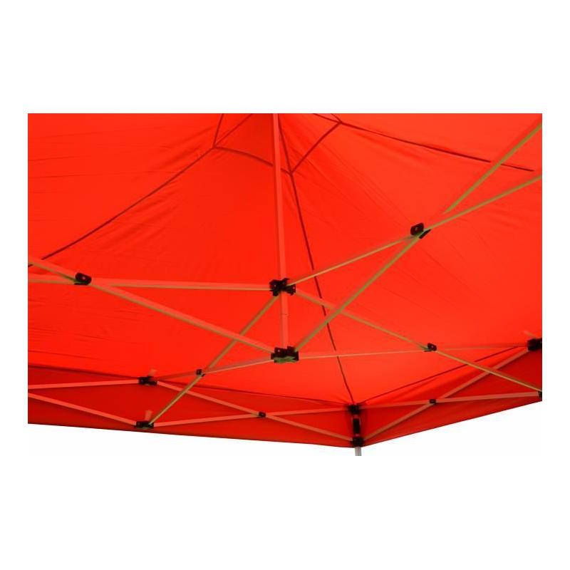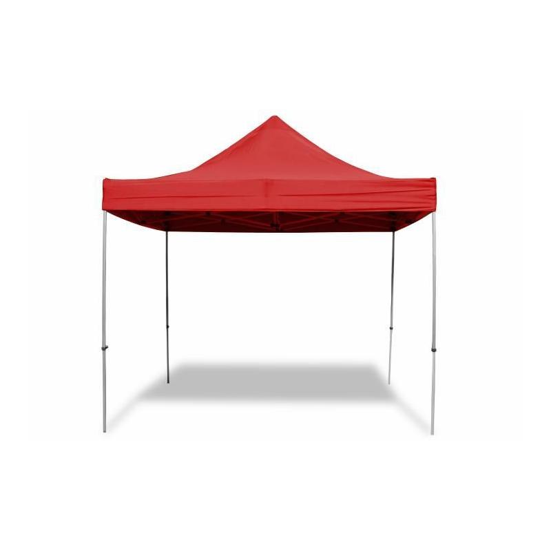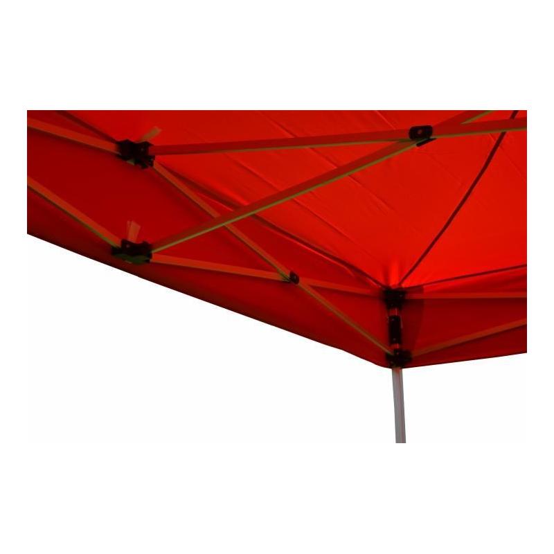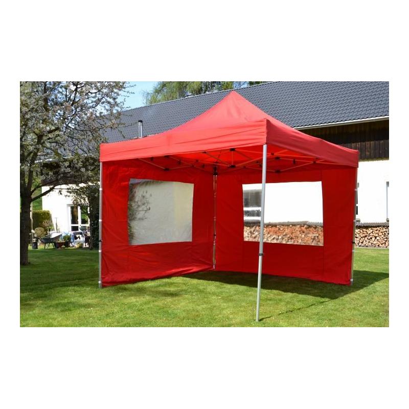 Nůžkový zahradní altán / stan v oblíbeném rozměru 3x3 m červené barvy. Profi provedení s eloxovanou hliníkovou konstrukcí a střechou + bočními stěnami z polyesteru s vodotěsnou úpravou. Součástí balení jsou 2 boční stěny s okny pro ochranu před větrem, které se upevňují ke konstrukci pomocí jednoduchých závěsů a suchého zipu.