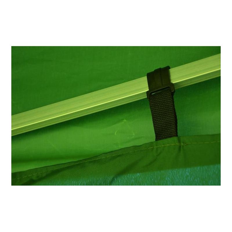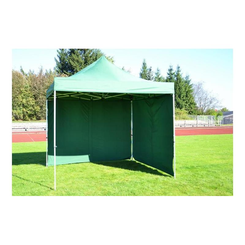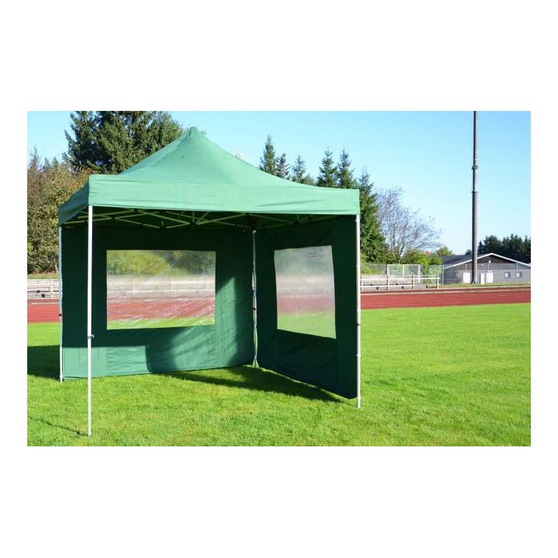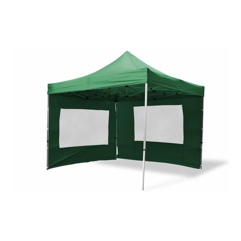 Nůžkový zahradní altán / stan v oblíbeném rozměru 3x3 m zelené barvy. Profi provedení s eloxovanou hliníkovou konstrukcí a střechou + bočními stěnami z polyesteru s vodotěsnou úpravou. Součástí balení jsou 4 boční stěny (2 stěny s okny, 2 stěny bez oken) pro ochranu před větrem, které se upevňují ke konstrukci pomocí jednoduchých závěsů a suchého zipu. Těmito stěnami je možno stan kompletně uzavřít ze všech stran.